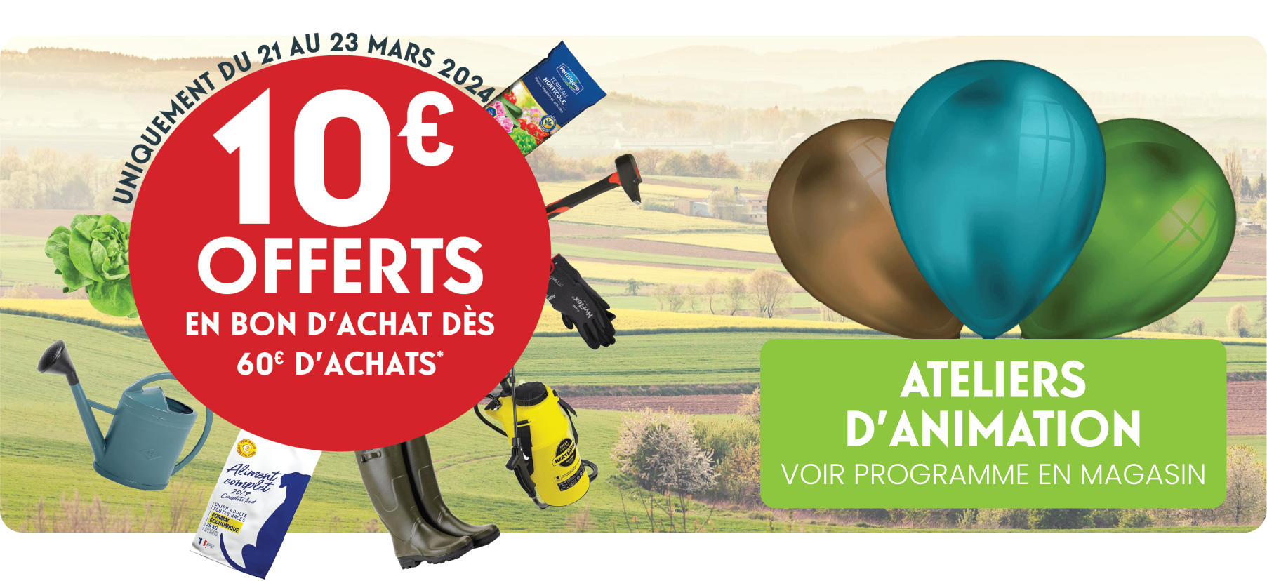 *Bon d’achat utilisable du 25 mars au 27 avril 2024. Valable sur la gamme de produits éligibles au programme de fidélité et non remboursable. Retrouvez les conditions du programme de fidélité en magasin ou sur wwww.espaceterrena.fr
